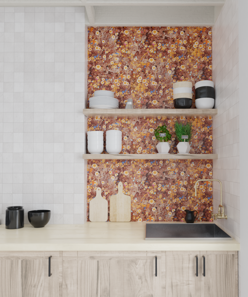 Transform your space with the Cali Flowers Wallpaper, featuring orange citrus hues and beautiful artwork by Samantha Santana. Inspired by the native springtime blooms in her Pasadena front yard, this wallpaper adds a touch of nature and art to any room. Elevate your décor with this unique and vibrant wallpaper.
