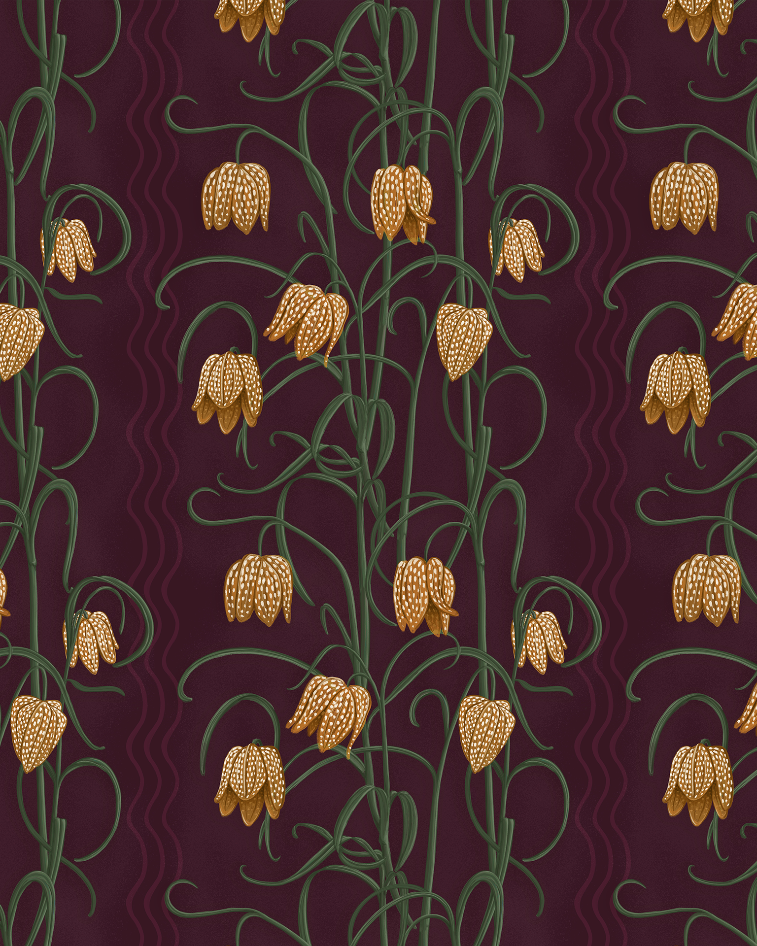 Campanas Wallpaper, eggplant and toffee