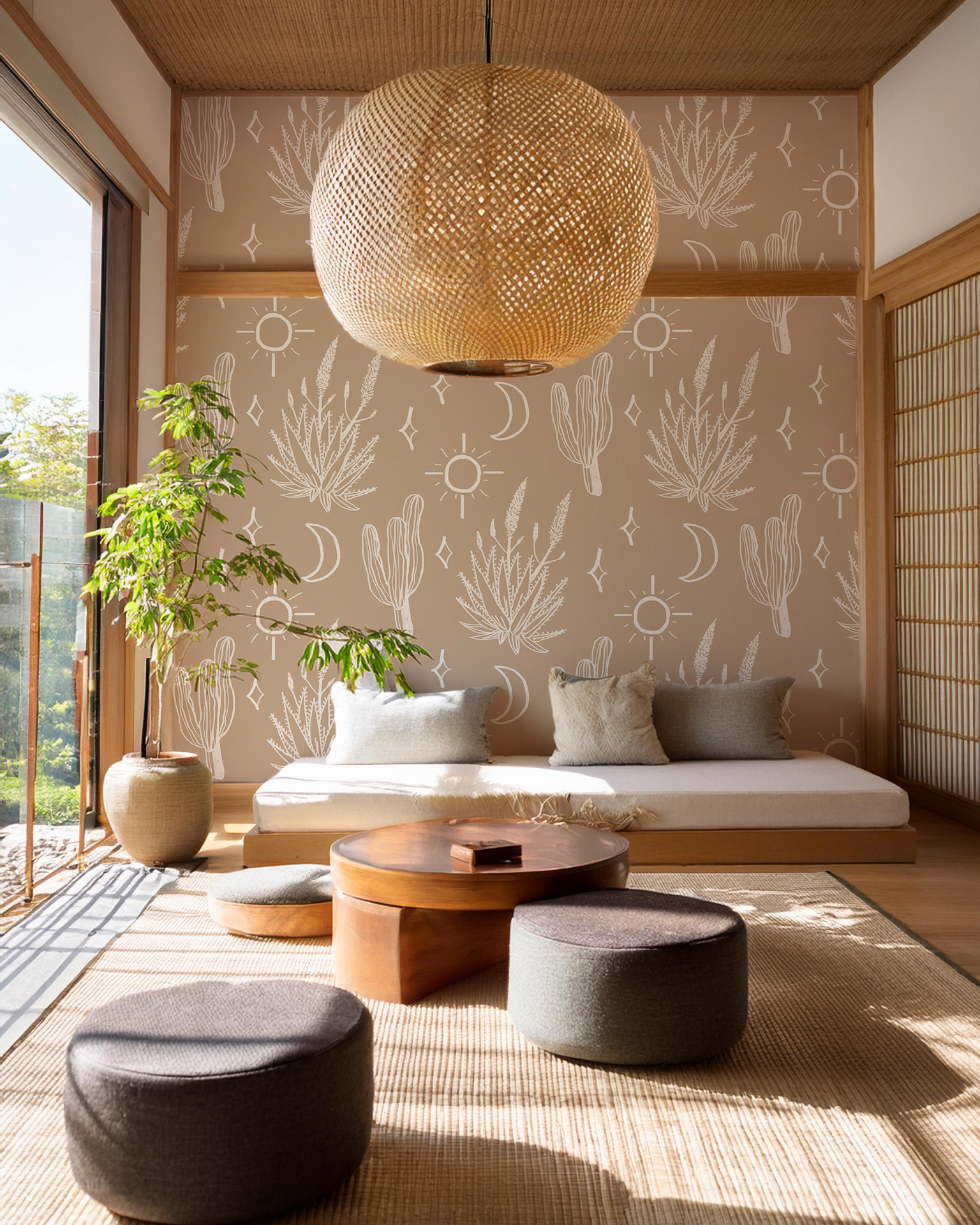 Add a touch of Western charm to your home with the Desert Sky wallpaper. Designed by Samantha Santana, the intricate patterns are inspired by the beauty of the desert landscape and sky. You can easily install it with both peel and stick vinyl and traditional pasted options. Best of all, it's completely removable!