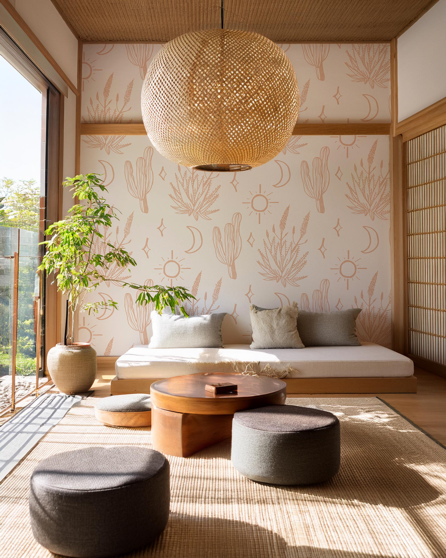 Add a touch of Western charm to your home with the Desert Sky wallpaper. Designed by Samantha Santana, the intricate patterns are inspired by the beauty of the desert landscape and sky. You can easily install it with both peel and stick vinyl and traditional pasted options. Best of all, it's completely removable!