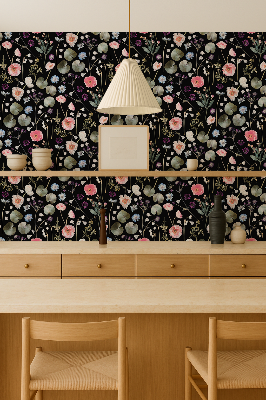 Transform your space with Floral Finds Wallpaper in black, featuring exquisite artwork inspired by Samantha’s carefully arranged flower photography. This elegant design brings a fresh, natural touch to any room. Installation is effortless with versatile peel-and-stick vinyl or smooth traditional paste options, allowing you to choose the method that suits you best. Plus, it’s completely removable, making it ideal for those seeking a sophisticated yet flexible décor solution.