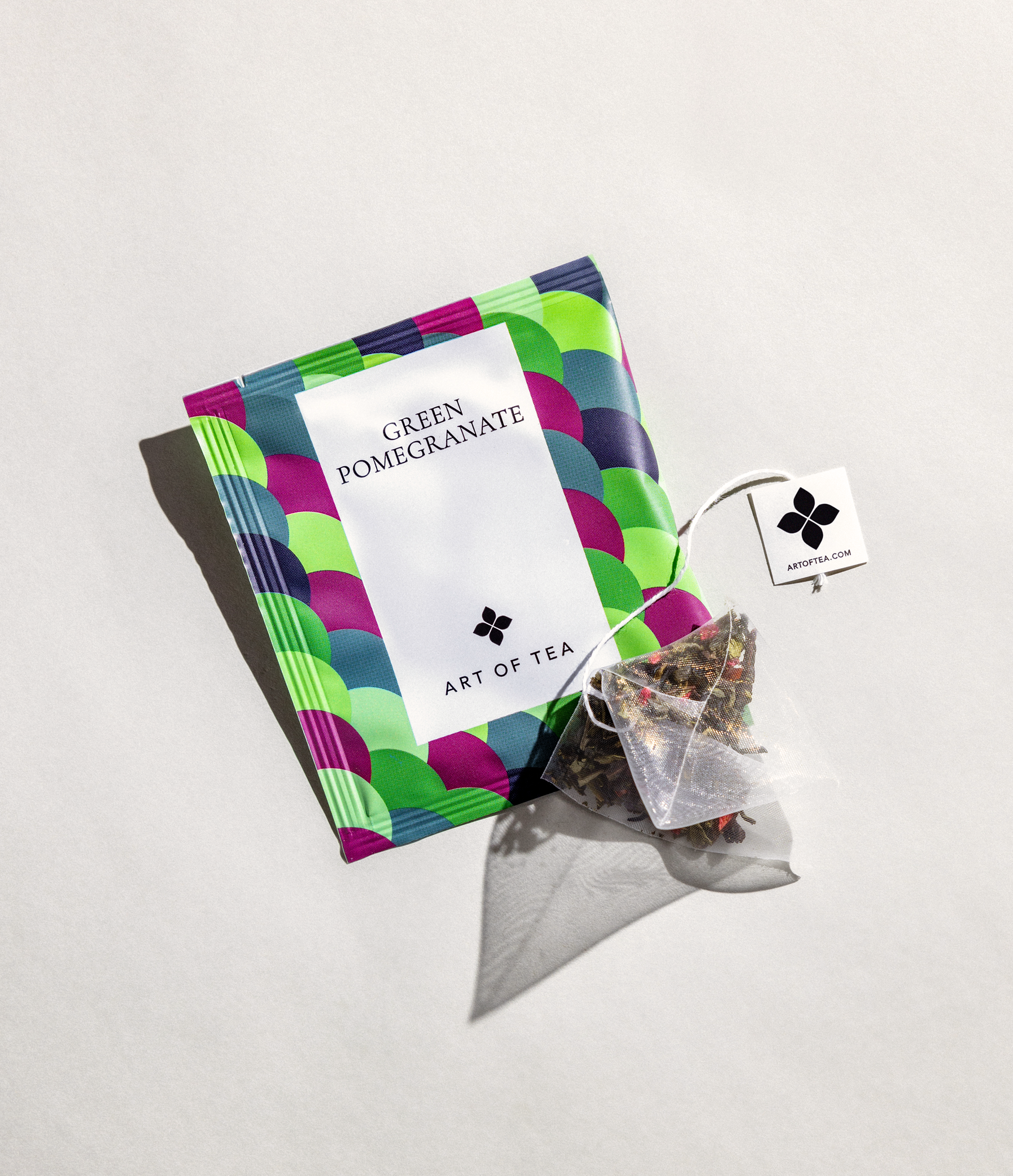 Sip our sweet, tart Green Pomegranate tea blend on the go in an eco-friendly, biodegradable teabag. With fresh and tangy flavor notes, this organic blend is the perfect pick-me-up.