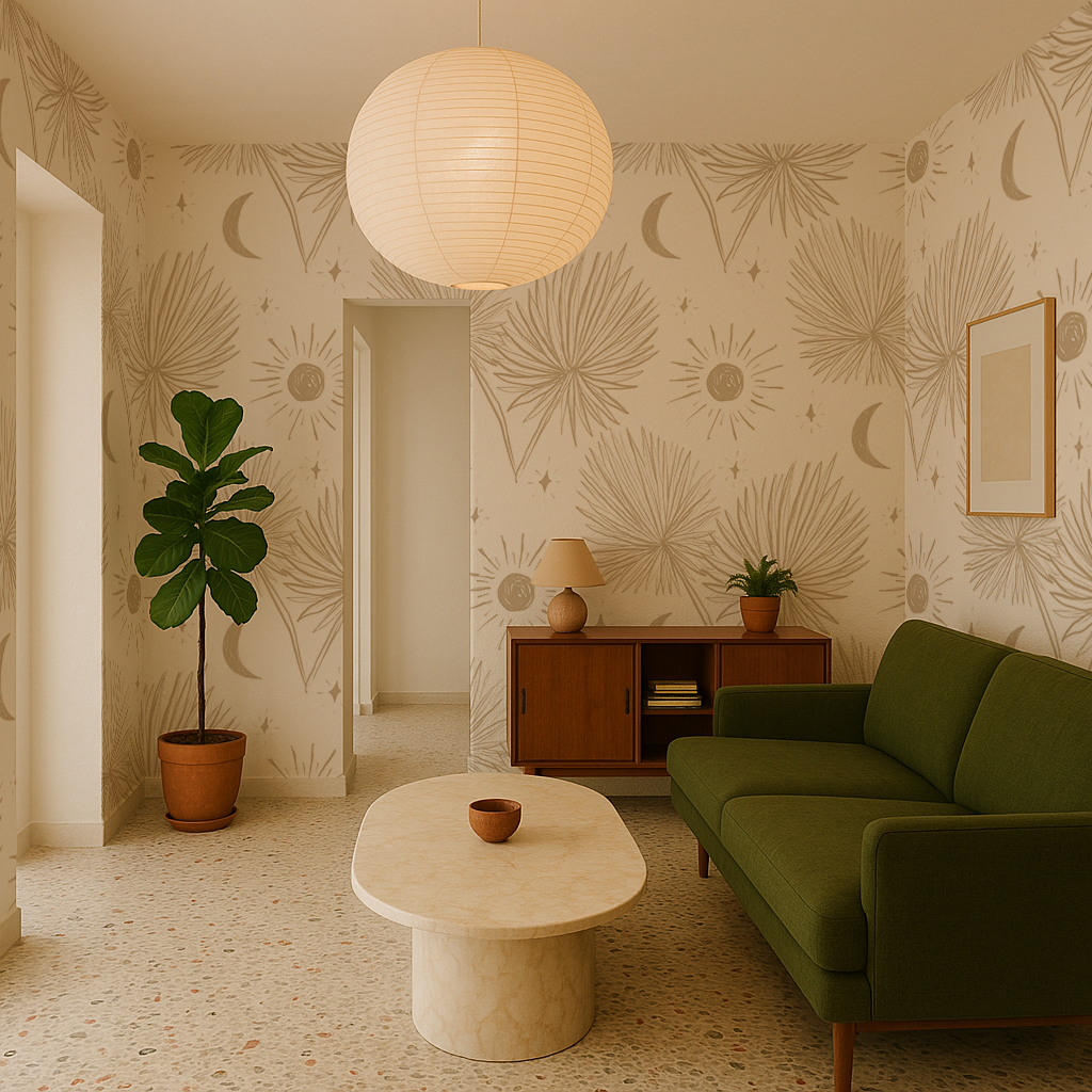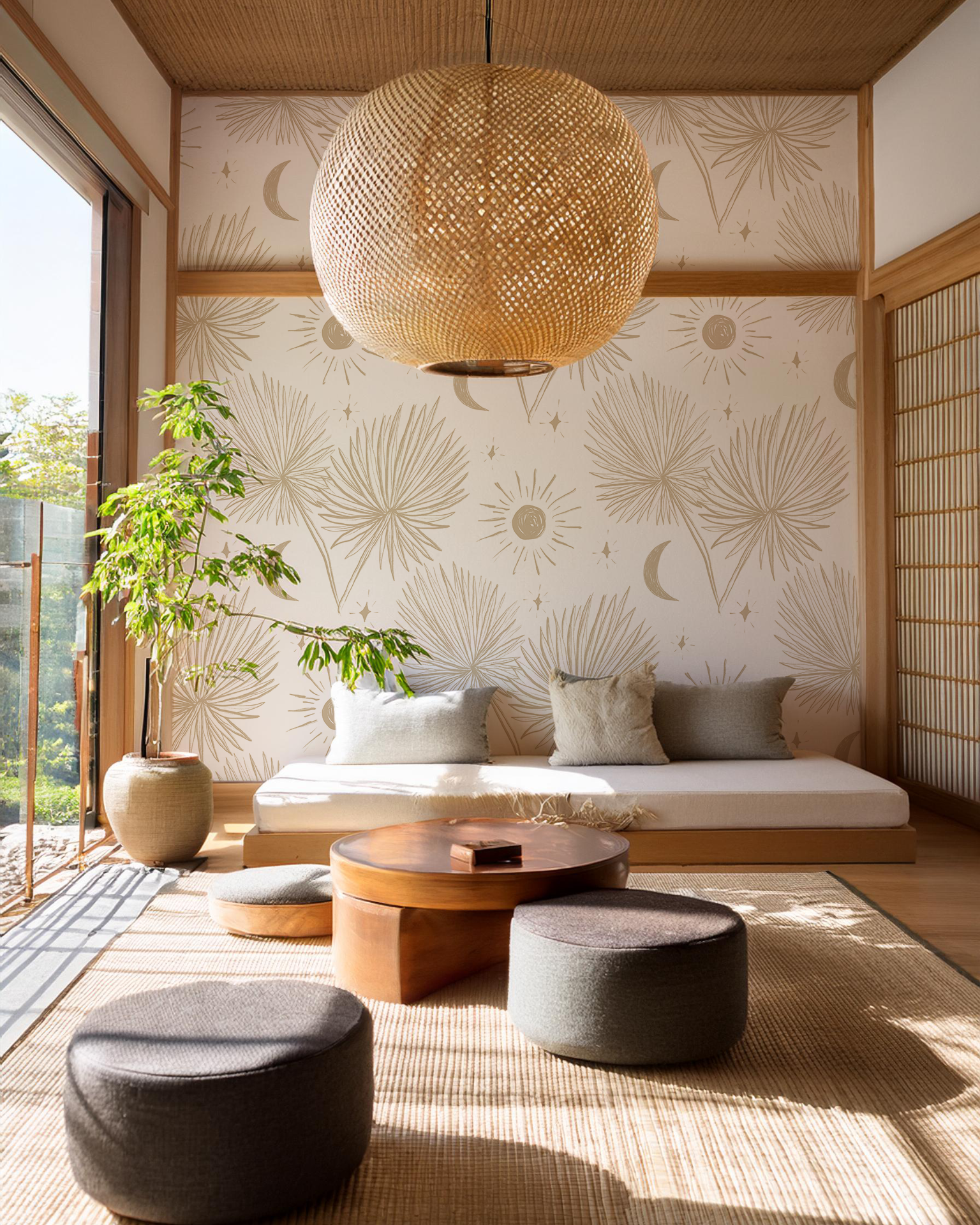Transform your space into a luxurious oasis with our Night Palm Wallpaper, featuring artwork by Samantha Santana. Inspired by starry summer nights, this wallpaper adds warmth and charm. Choose between easy peel and stick or smooth traditional paste installation. And it's removable - perfect for a sophisticated and ever-changing aesthetic.
