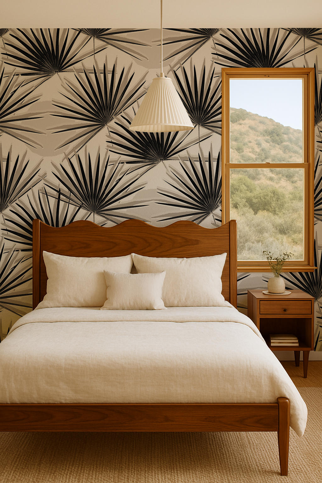 Bring a splash of golden girl charm and Palm Springs flair to your space with our Palm Deco Wallpaper in sophisticated neutrals and black. Illustrated by Samantha Santana, this stylish design adds a playful yet sophisticated touch to any room. Choose between easy peel-and-stick vinyl for quick application or smooth traditional paste for a classic finish. Plus, it’s completely removable, making it perfect for renters or anyone who loves to refresh their decor with ease.