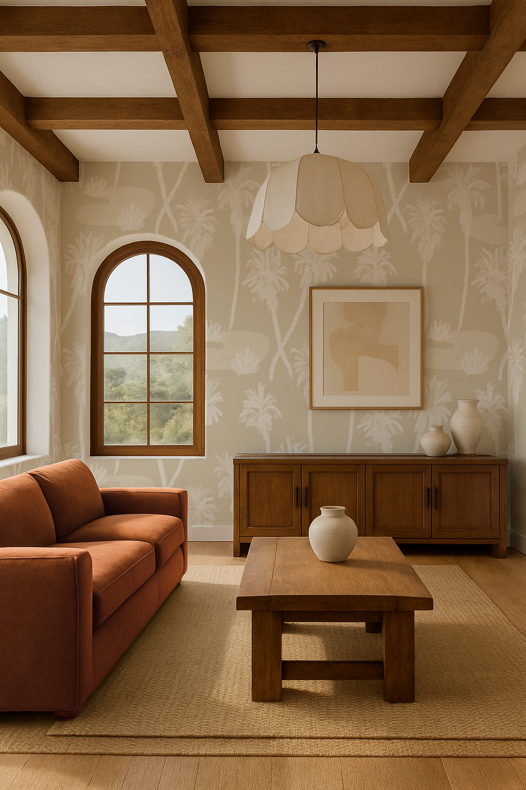 Transform your walls with the Palm Oasis Wallpaper. Illustrated by Samantha Santana, this wallpaper is inspired by the vibrant energy of Palm Springs in a more neutral manner. With easy installation options and the ability to remove it, bring a touch of the oasis into your home with this stunning wallpaper.