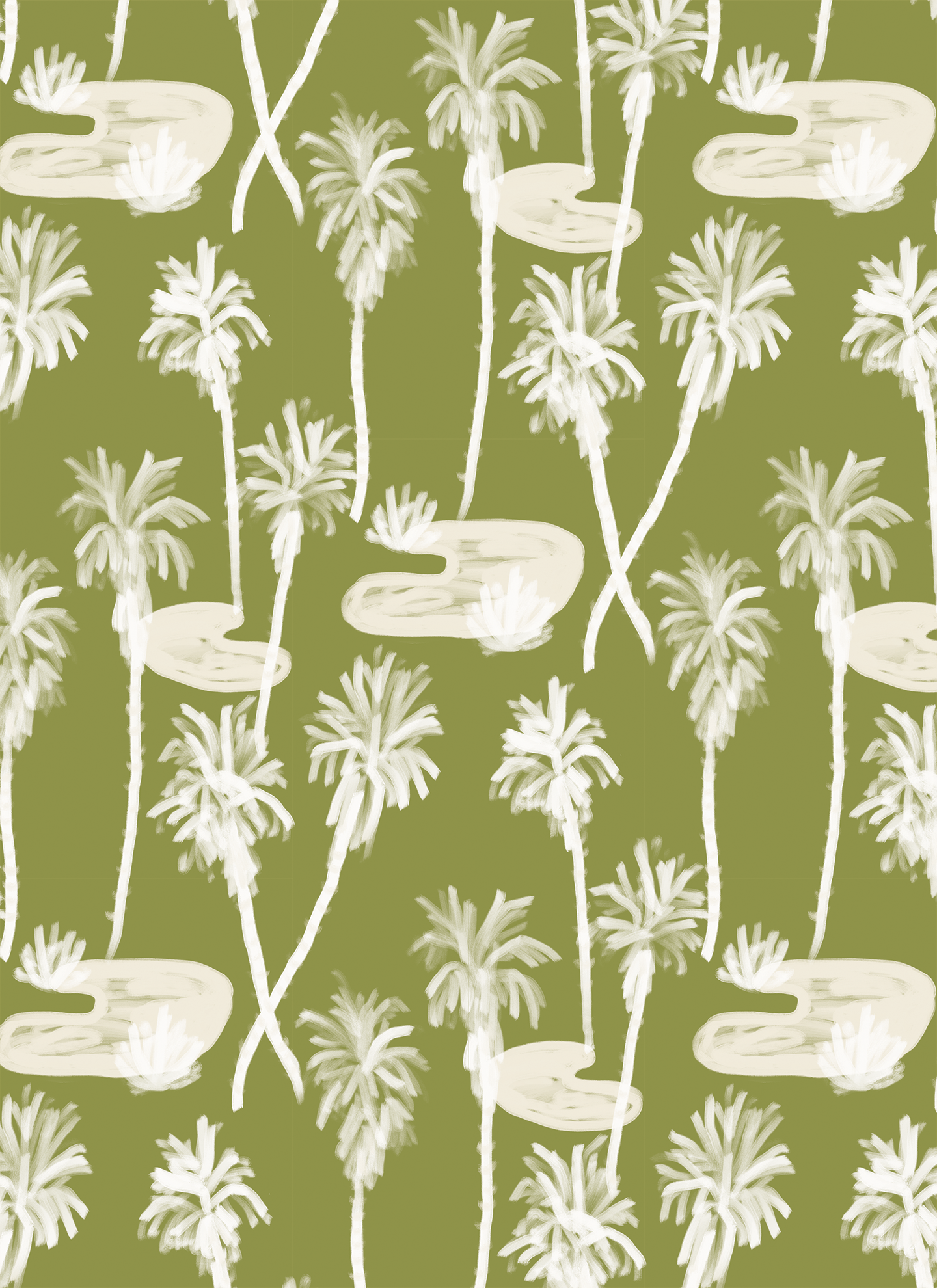 Palm Oasis Wallpaper, olive green and white