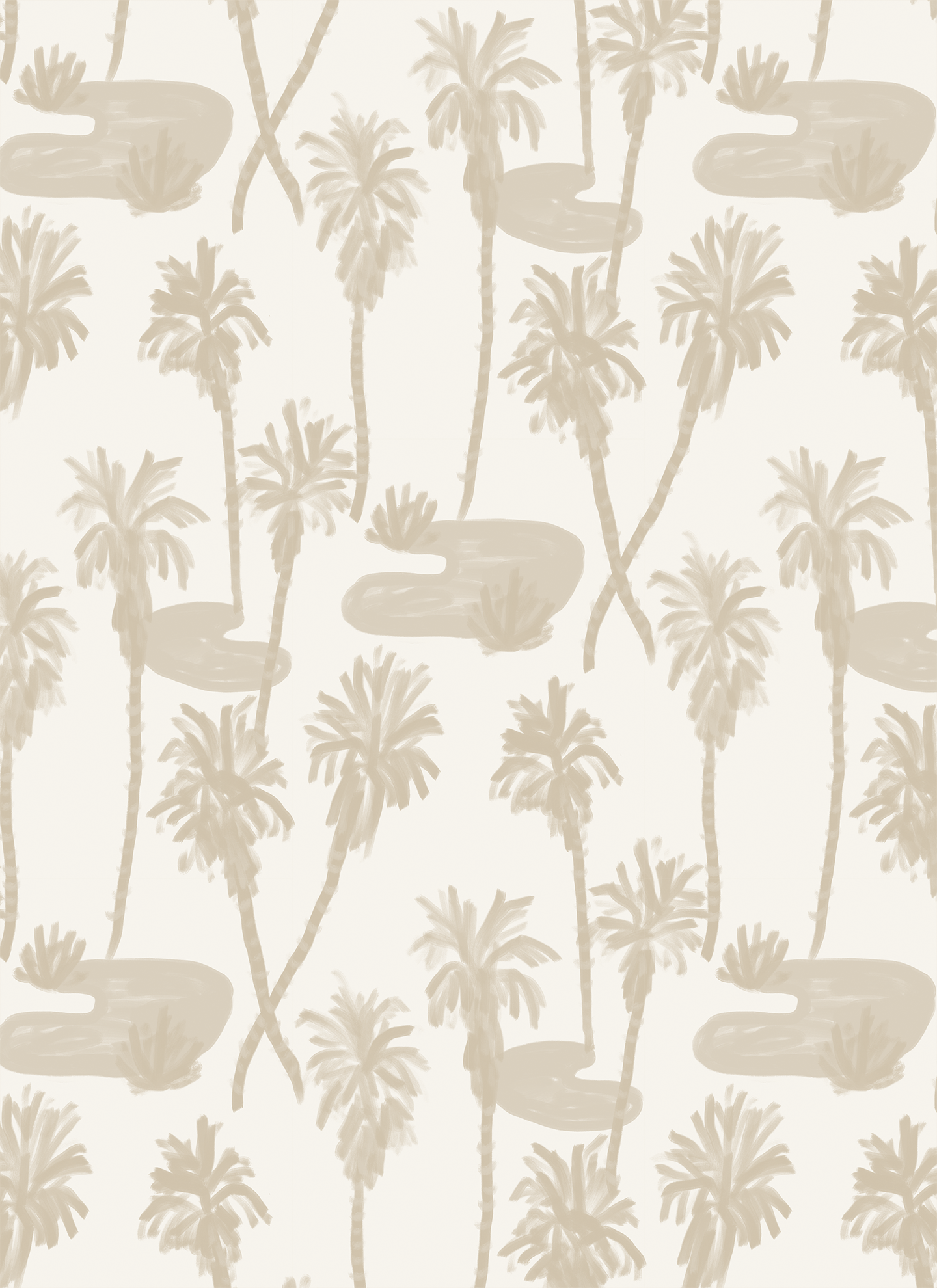 Transform your walls with the Palm Oasis Wallpaper. Illustrated by Samantha Santana, this wallpaper is inspired by the vibrant energy of Palm Springs in a more neutral manner. With easy installation options and the ability to remove it, bring a touch of the oasis into your home with this stunning wallpaper.