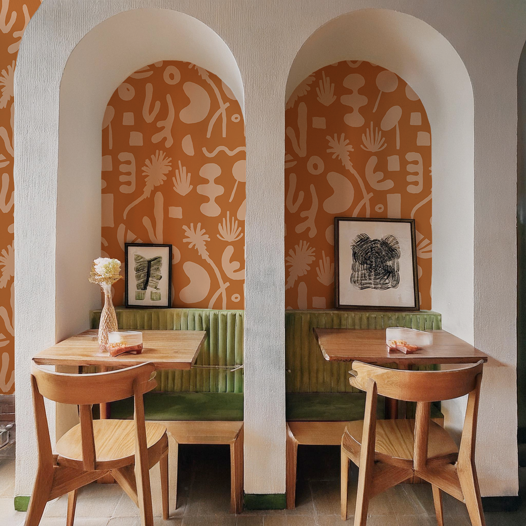 Add a vibrant splash to your space with this Pool Side Wallpaper by Samantha Santana. Featuring abstract, modern designs in playful orange hues, it brings a fun, artistic vibe inspired by Palm Springs. Easy to install with peel-and-stick vinyl or traditional paste, this wallpaper adapts to your style and is fully removable, letting you refresh your walls anytime without hassle.