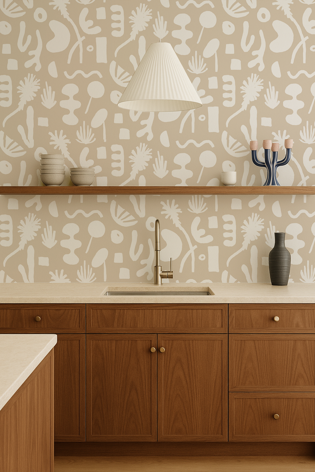 Pool Side Wallpaper, tan and white