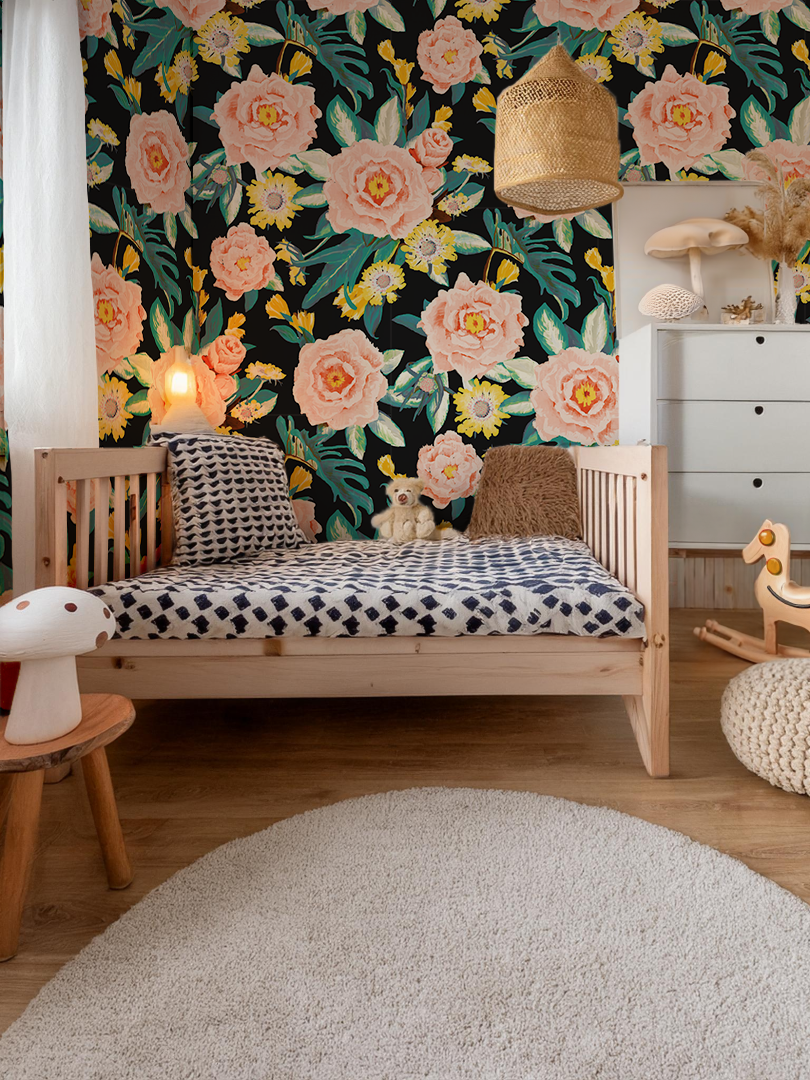 Posh Posy Wallpaper, black