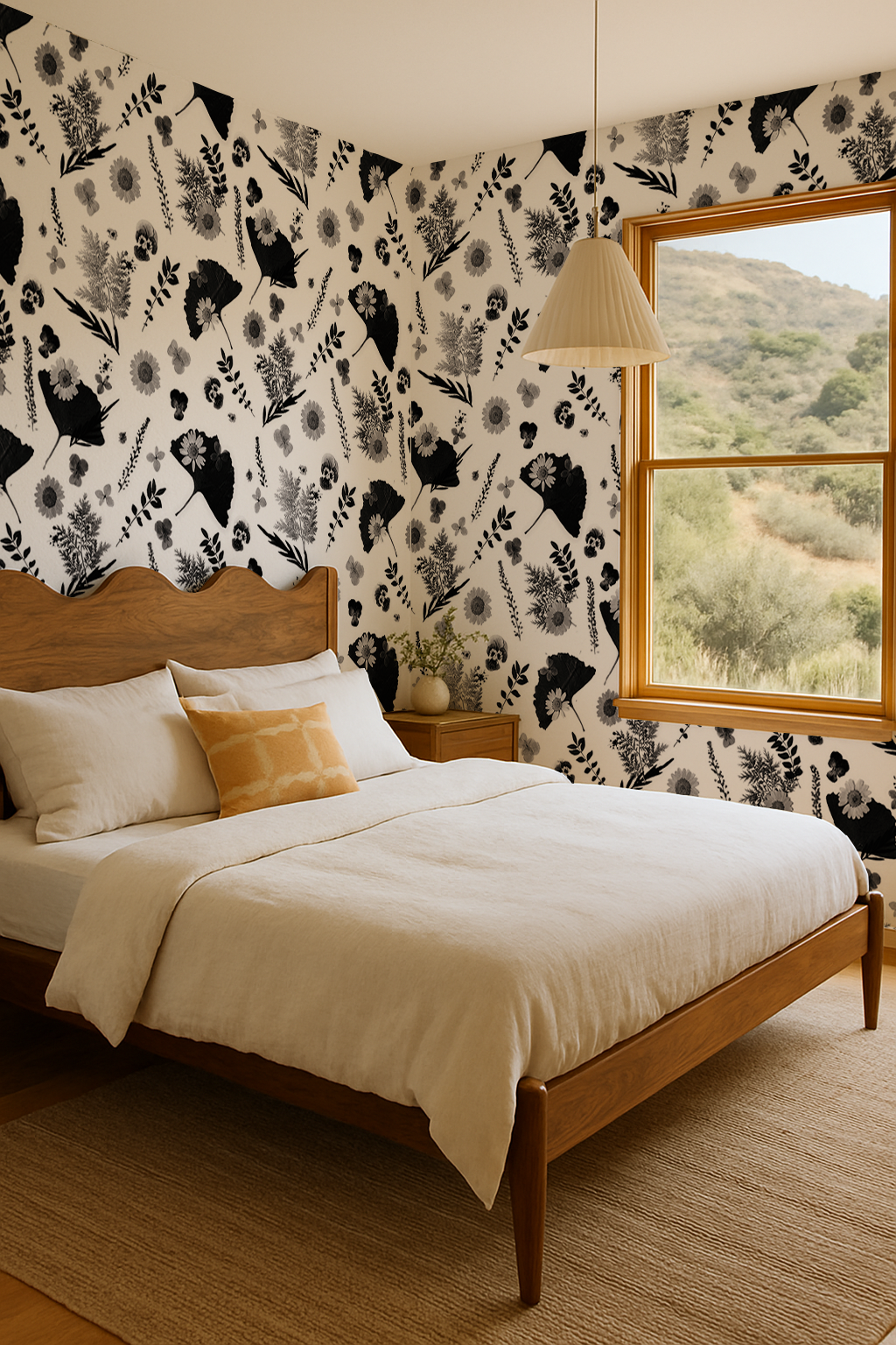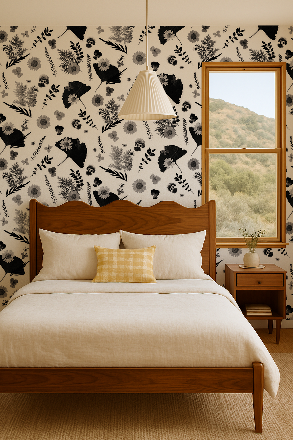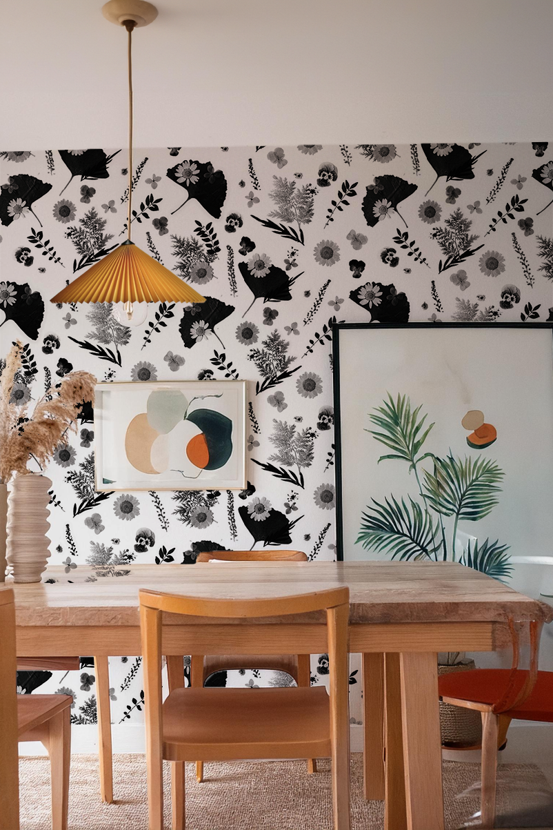 Experience the beauty of nature with Pressed Fresh Version 01 Wallpaper. Crafted from dried flowers arranged by Samantha, this artwork adds a touch of moody spring to any space. With both peel and stick vinyl and traditional pasted options, installation is a breeze. And when you're ready for a change, it's easily removable. Elevate your walls with this unique and exclusive design.