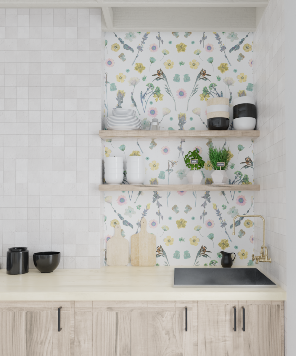 Experience the beauty of nature with Pressed Fresh Version 02 Wallpaper. Crafted from dried flowers arranged by Samantha, this artwork adds a touch of spring to any space. With both peel and stick vinyl and traditional pasted options, installation is a breeze. And when you're ready for a change, it's easily removable. Elevate your walls with this unique and exclusive design.