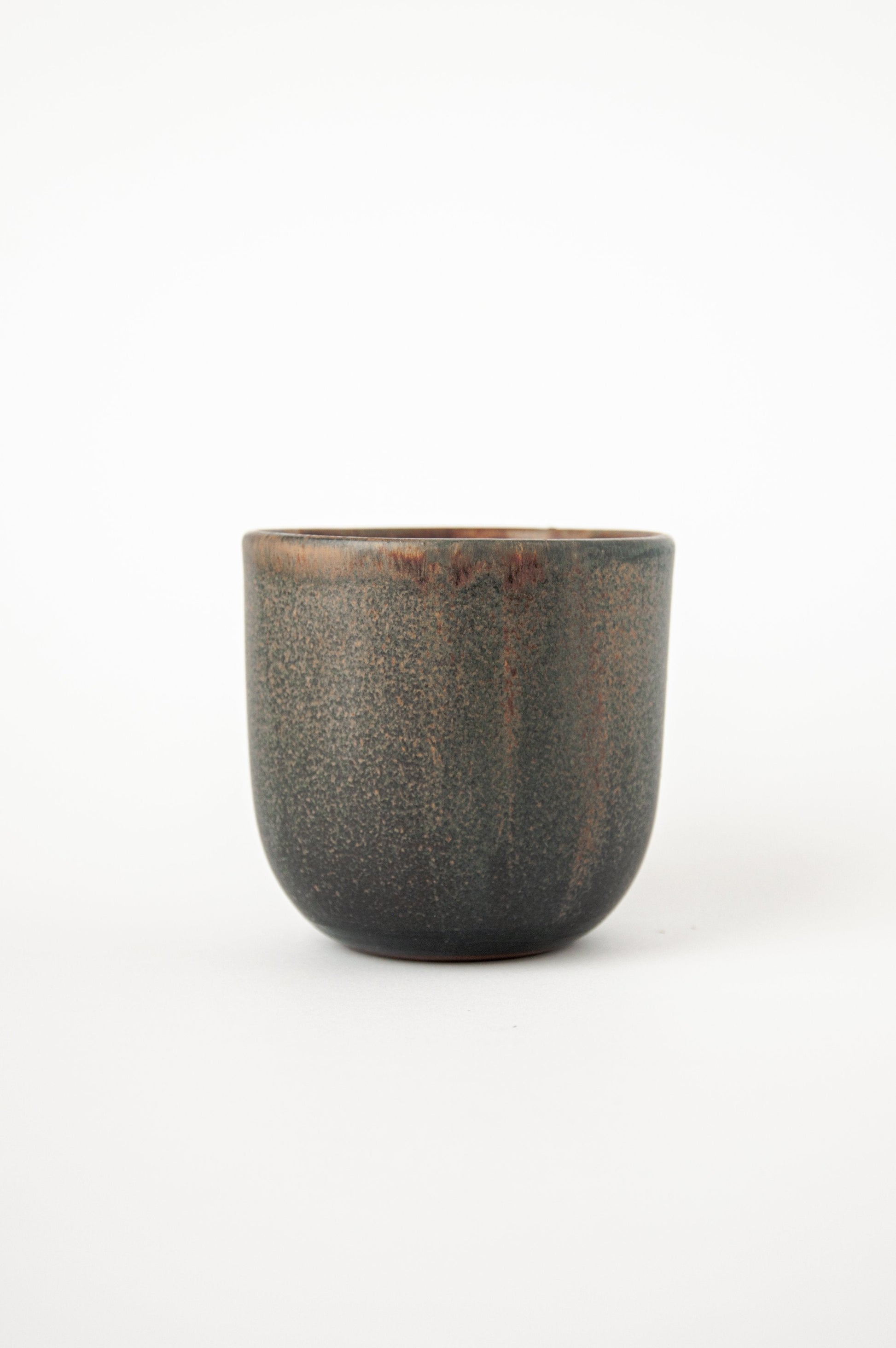 Rust handmade stoneware mug with organic edges is perfect for a latte, coffee, tea, etc. Hand-dipped in a reactive glaze that swirls uniquely across each piece. The clean, modern shape of this stoneware mug displays unique patterning and tonal effects. Fired at very high temperatures, the mug has exceptional strength and durability.
