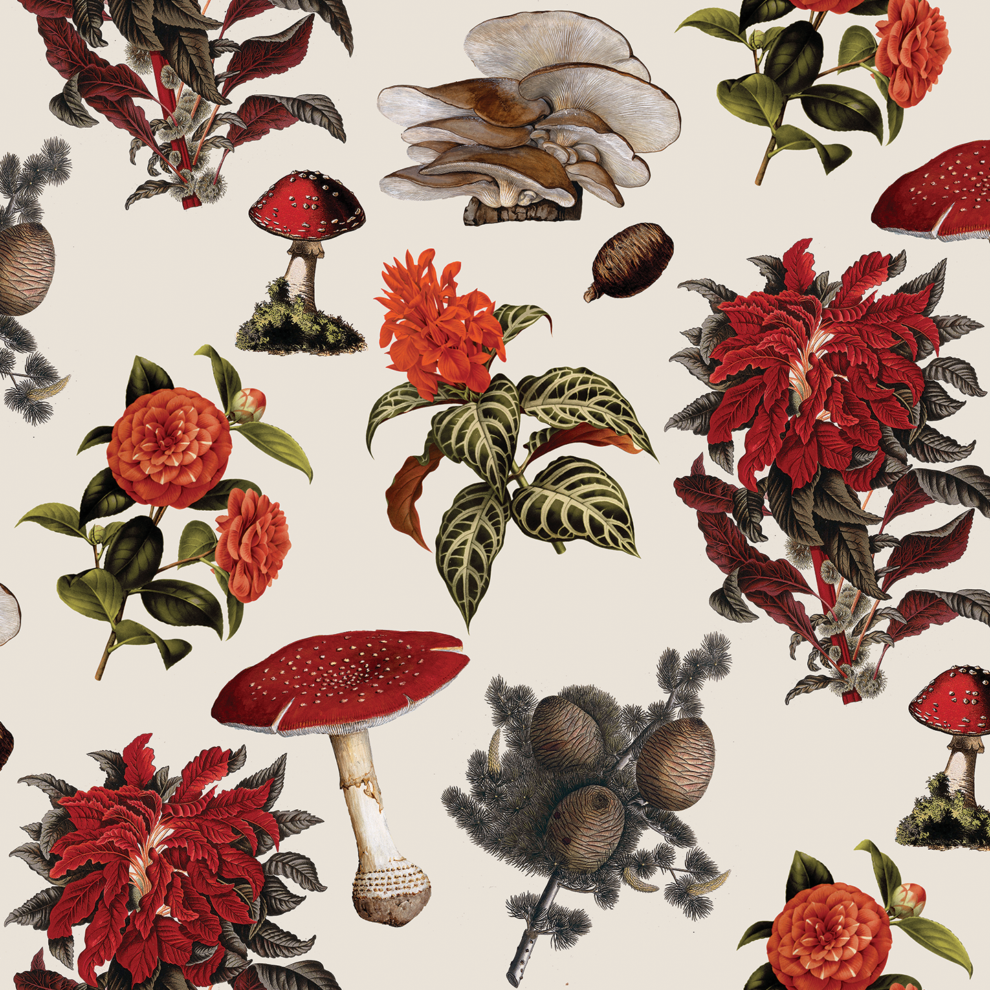Shrooms Wallpaper, off-white and red