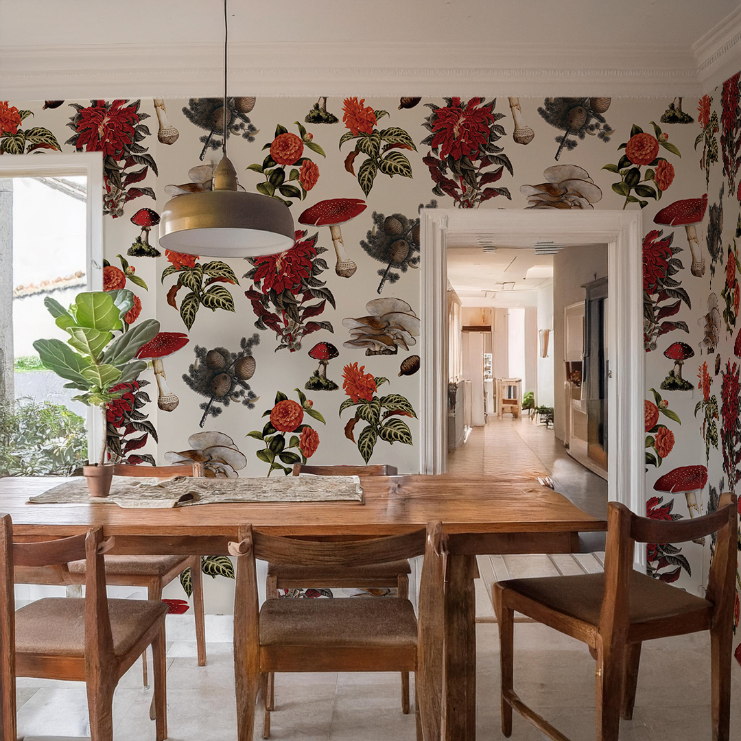 Transform your home into a whimsical and botanical paradise with the Shrooms wallpaper. Featuring beautiful vintage illustrations collaged together by Samantha Santana, this wallpaper is a must-have for any plant and mushroom enthusiast. Easy to install with both peel and stick vinyl and traditional pasted options, you can create your dream space in no time. And the best part? It's completely removable!