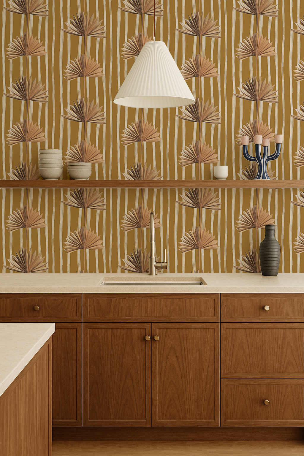 Transform your space with the playful and vibrant Stripey Palm Wallpaper. Illustrated by Samantha Santana, this wallpaper brings a touch of desert and tropical vibes to any room. With easy installation options and the ability to remove it at any time, it's the perfect way to freshen up your home with a touch of personality.