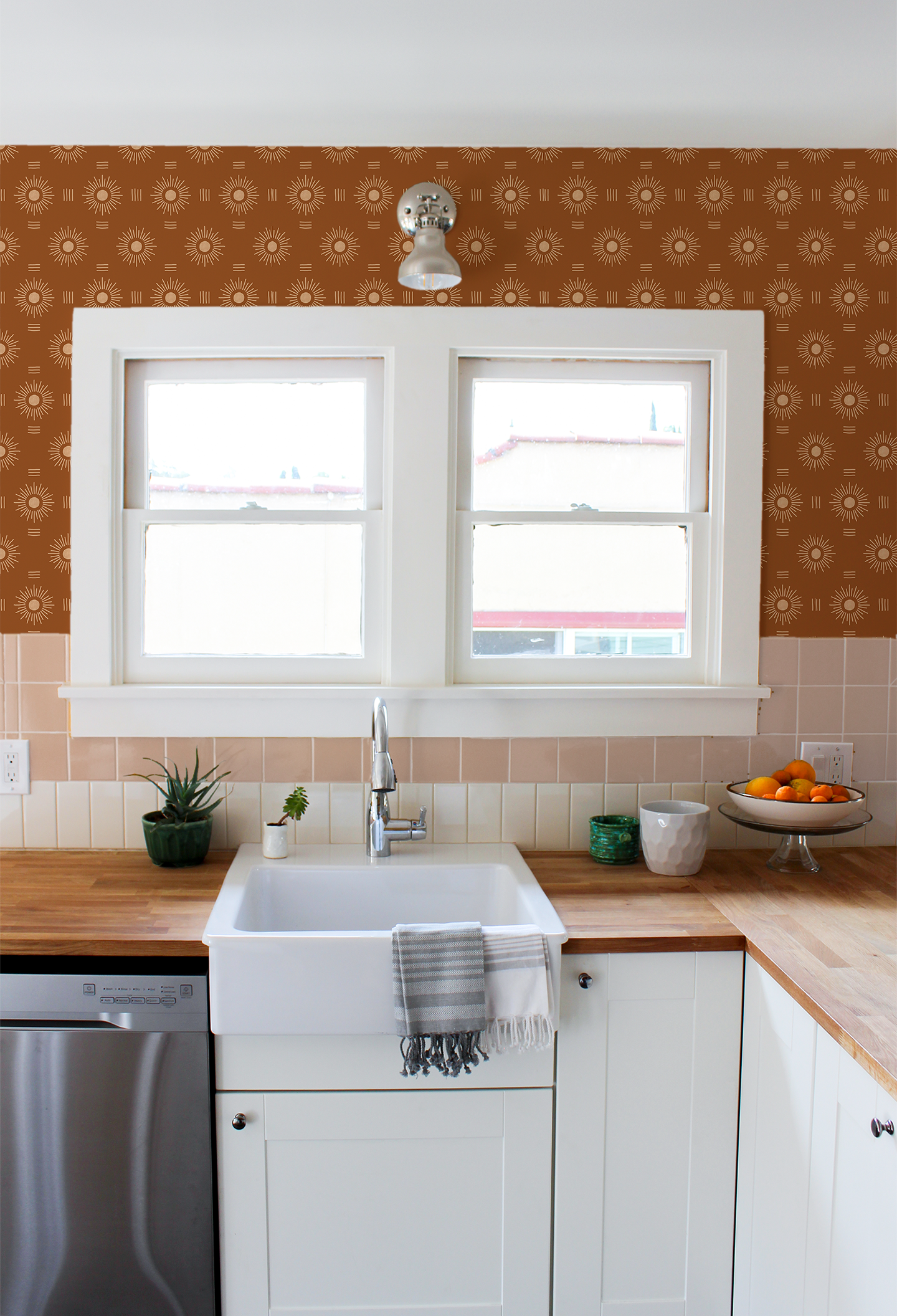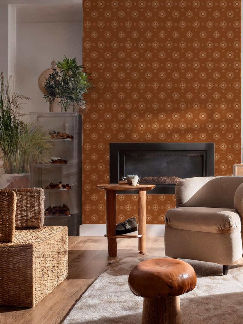 Sun Rays Wallpaper, rust and peach