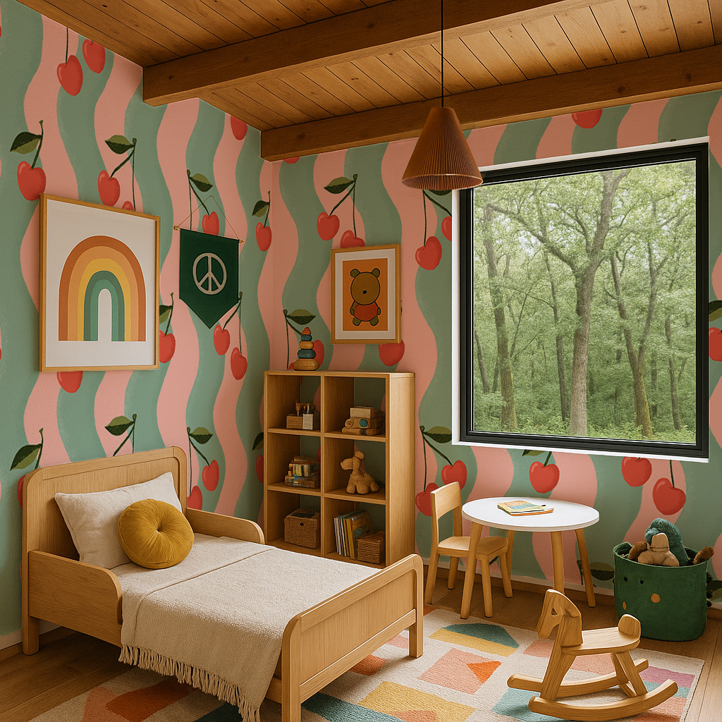 Make your space pop with Wavy Cherry wallpaper - a playful, fruity twist on traditional decor by Samantha Santana. Installation is a breeze with peel and stick or traditional pasted options, and it's even removable!